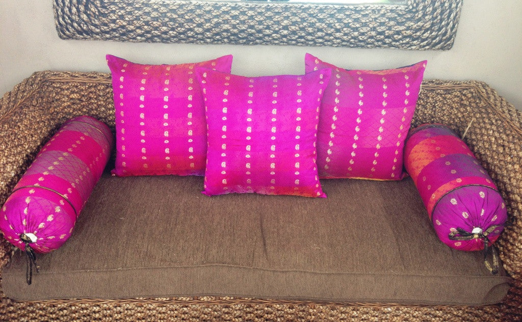 Balinese Sari Cushion Cover Set & Bolsters suitable for Daybeds